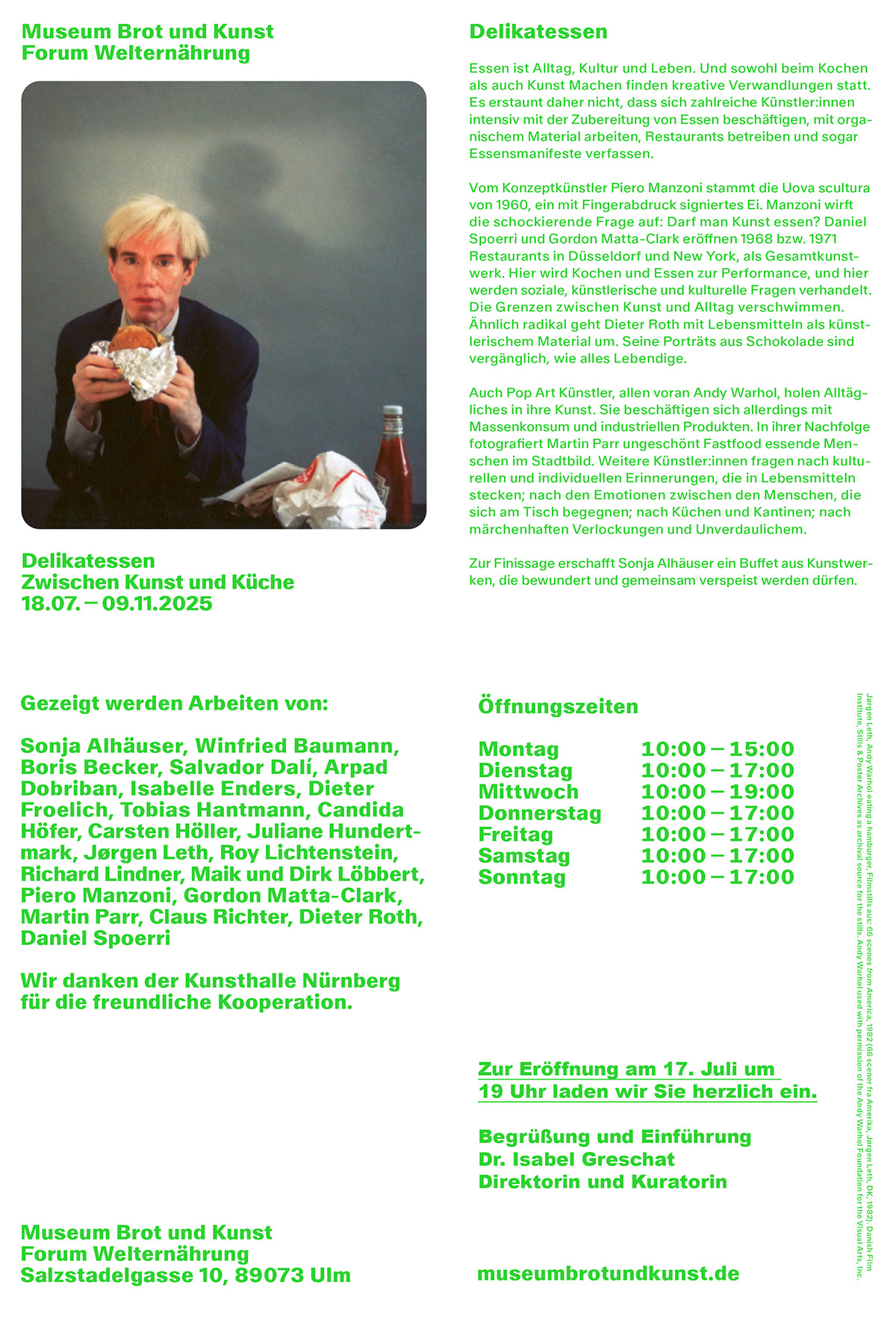 Öffnungszeiten: Di.–Fr. 14 –19 Uhr · Sa./So. 12 –18 Uhr