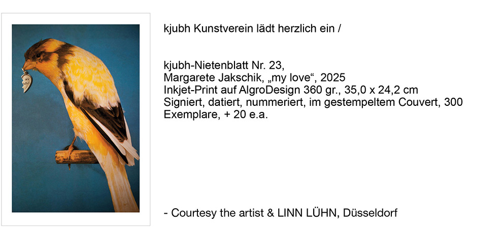Jede/r die/der durch eine Teilnahme keine Arbeit aus der Group Show bekommt, erhält ein kjubh-Nietenblatt Nr. 23.