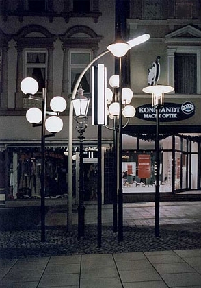 Im Zuge von Umbaumaßnahmen wurden in der Fußgängerzone Bahnhofstraße eine Vielzahl unterschiedlicher Straßenleuchten entfernt und einheitlich durch eine neue Leuchte (Herstellerbezeichnung: Herner Leuchte) ersetzt. Das Lichtobjekt DIE HERNER LEUCHTEN besteht aus einer Zusammenstellung von sieben alten und ausgemusterten Straßenlaternen aus diesem Bereich.