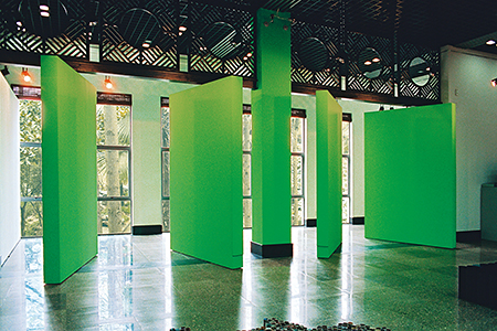 Wandfarbe auf Pfeiler und vorhandenes drehbares Stellwandsystem