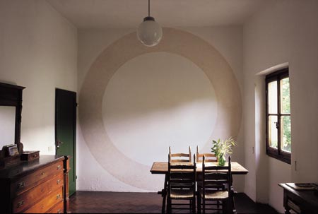 "Künstler, die in der florentinischen Villa Romana weilen, werden vermutlich immer mit einem kulturhistorischen ,Aspekt‘ dieser Region konfrontiert: dem toskanischen (Rot-)Wein. Ihn haben die Löbberts als Material genutzt, indem sie mit dieser natürlichen Farbe auf eine Wand eines weiteren kulturhistorisch bedeutsamen ,Aspekts‘, dem eines Klosters, einen Kreis malten. Doch bei allem künstlerischen Witz: hier bildet die Freskomalerei den Quasi-Hinter- bzw. Untergrund für ein tief einziehendes, jedoch gleichermaßen vergängliches Bild."